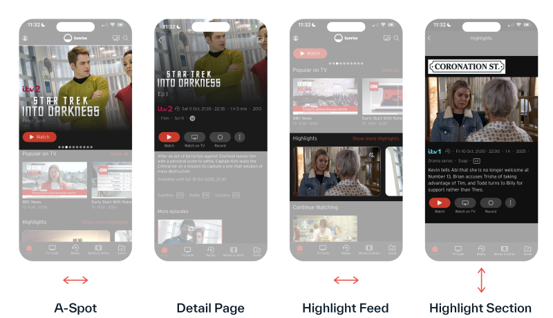 TV Highlights are fully integrated into the Sunrise TV App experience: